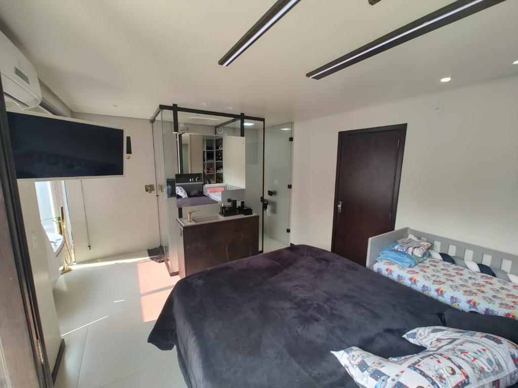 O imóvel possui 2 dormitórios, ambos suítes, incluindo uma suíte master com banheira de hidromassagem sob claraboia (Sky Window) e closet.