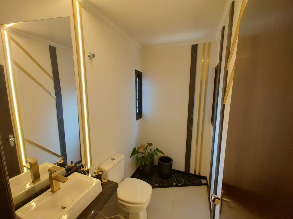 Conta ainda com lavabo, sala de estar e jantar com lareira integradas à cozinha americana, além de área de serviços funcional.