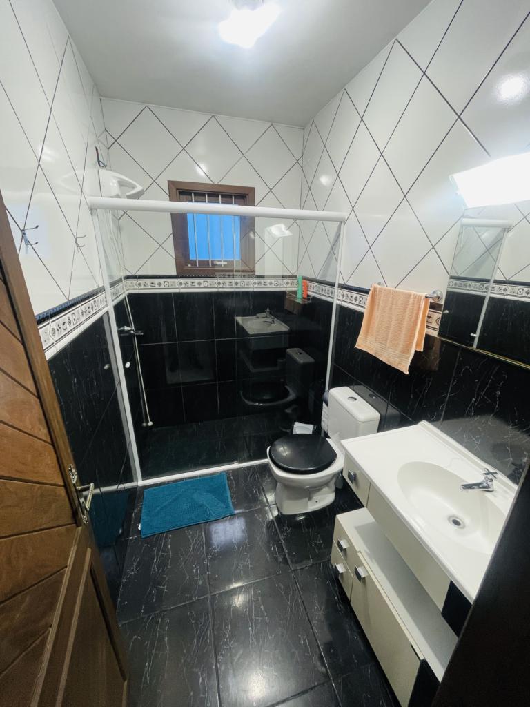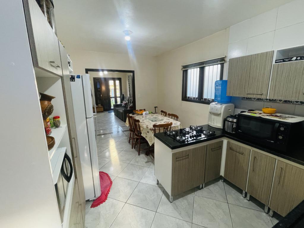Casa de alvenaria com 112m² privativos, composta por 3 dormitórios, sendo 1 suíte, 2 banheiros, sala de estar com lareira, sala de jantar integrada à cozinha, com móveis planejados e balcões em pedra. Imóvel bem iluminado, com pintura interna e externa renovadas recentemente, aberturas em madeira de itaúba e teto todo em laje com telhado protegido por telas de concreto. Possui também corredor lateral funcional para extensão de varais.