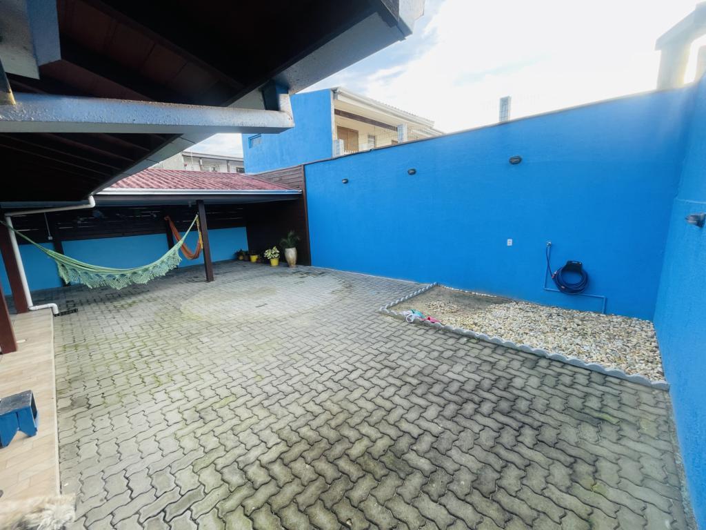 Terreno 12x25m murado com pátio frontal e pátio privativo nos fundos, ambos com piso em concreto. Conta com garagem coberta para 2 veículos, com possibilidade de estacionar mais 3 carros no pátio. Área externa com churrasqueira, pia e bancada, ideal para lazer em família. Portão eletrônico e estrutura sólida, demonstrando conservação e cuidado.