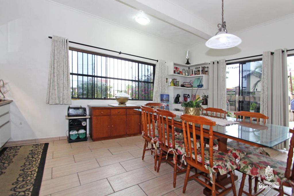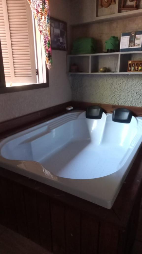 Nos fundos, há uma peça completa com cozinha equipada, fogão a lenha e banheira com água quente - espaço ideal para lazer e descanso. A área externa conta com piscina com duplo sistema de aquecimento (solar e elétrico), além de pátio amplo, perfeito para o convívio familiar e social.