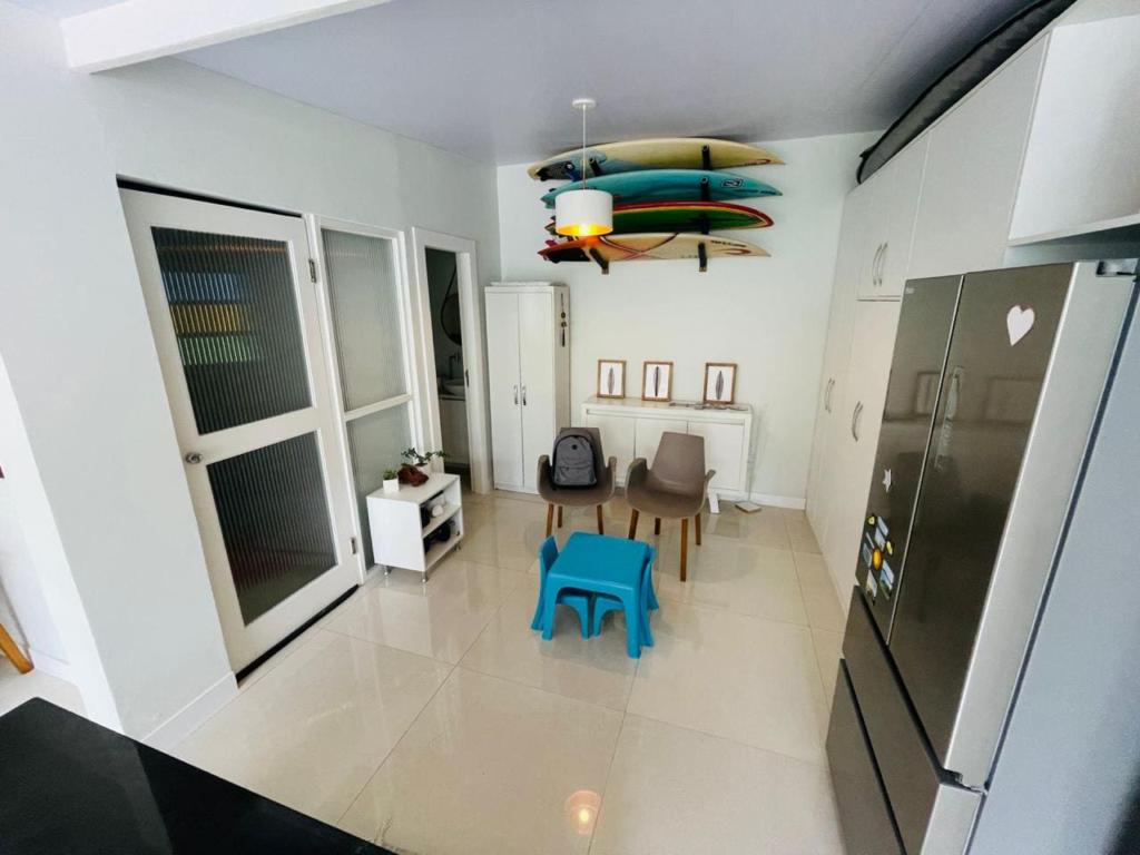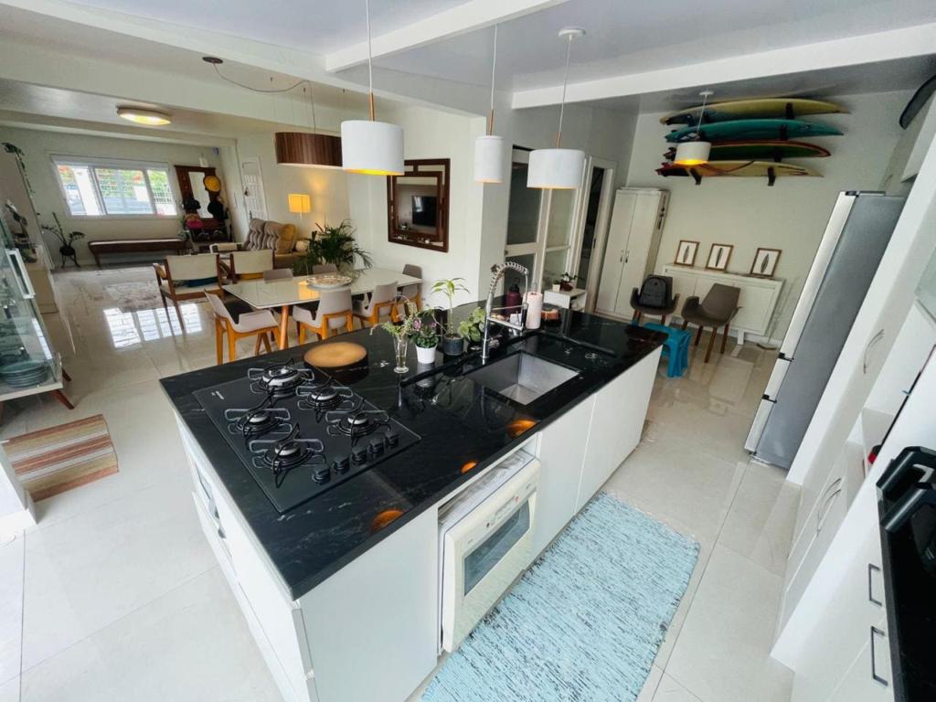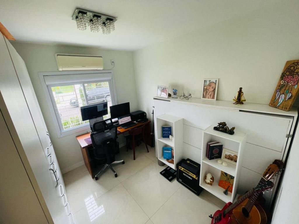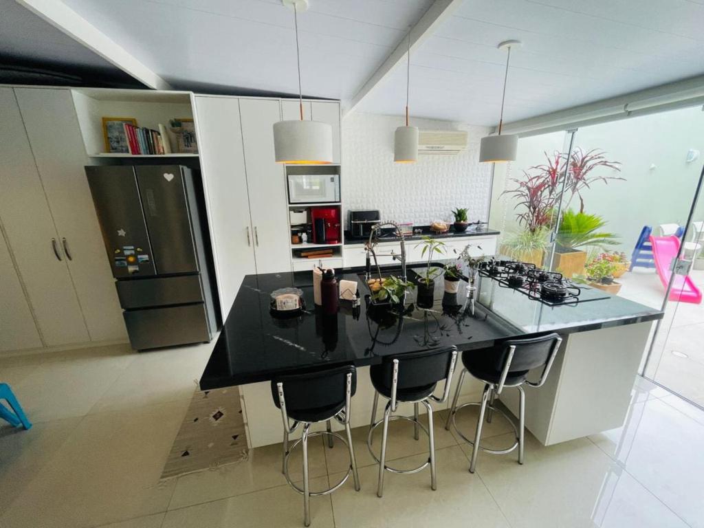 Conta ainda com sistema de ventilação cruzada natural, ar-condicionado no living e duas esperas para splits, aquecimento a gás nos banheiros e cozinha, piso único em porcelanato (interno e externo), aberturas em alumínio e telhado reformado com telhas de concreto. O imóvel possui vaga coberta para dois veículos e sistema de segurança instalado.