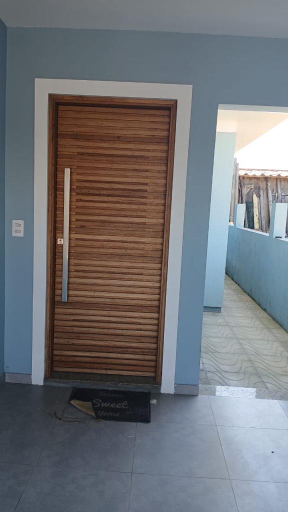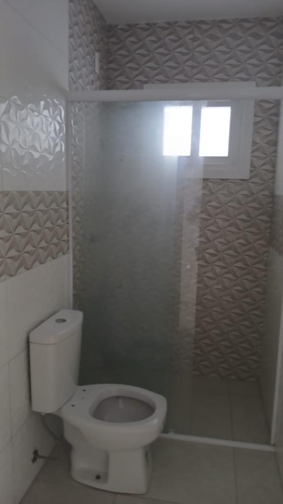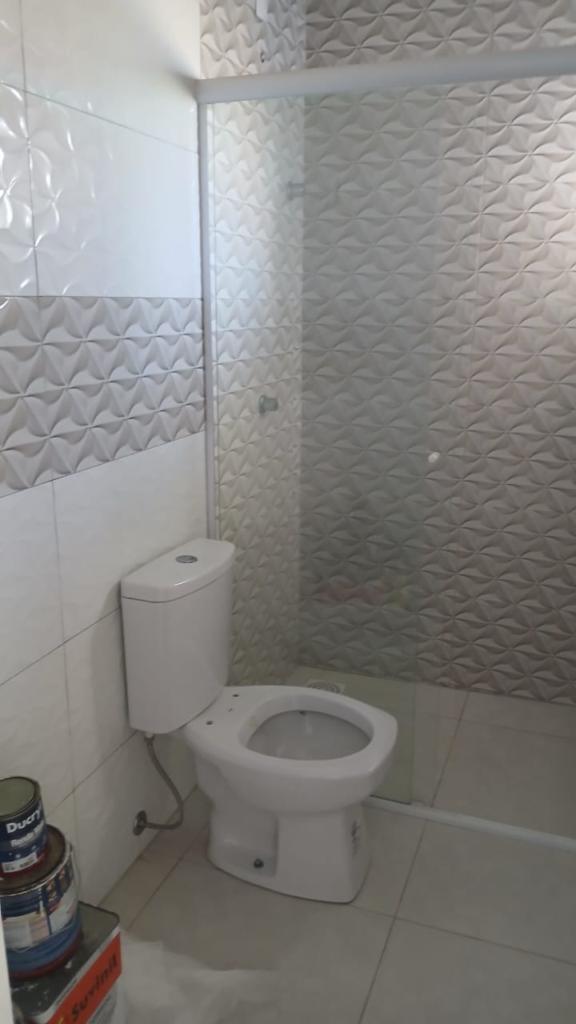 A casa é toda em laje, possui aberturas internas e externas em PVC, banheiros revestidos em porcelanato e equipados com box de vidro, agregando durabilidade e um acabamento superior.