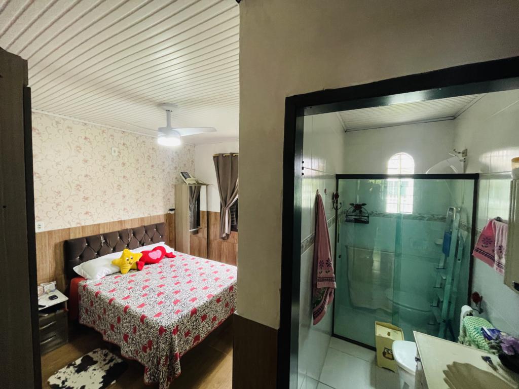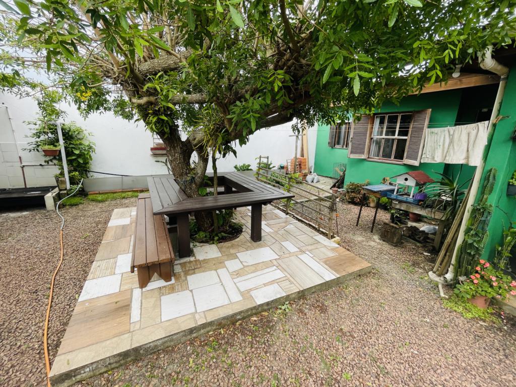 Ampla residência principal com três dormitórios, sendo uma suíte. Ambientes internos bem distribuídos, com sala de estar, cozinha funcional e banheiros arejados. A casa apresenta pátio arborizado na frente e nos fundos, garantindo ótima iluminação e ventilação natural.
