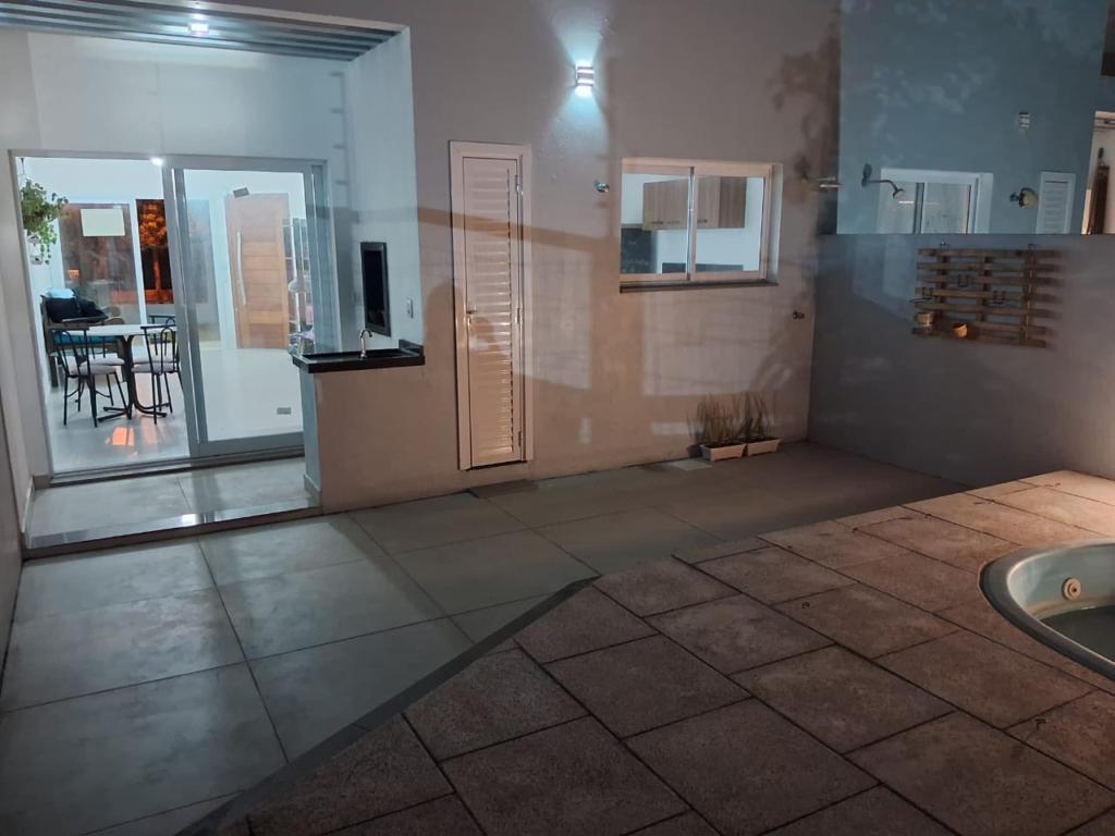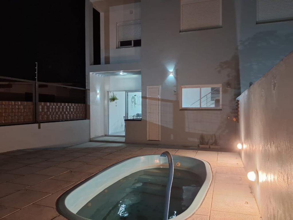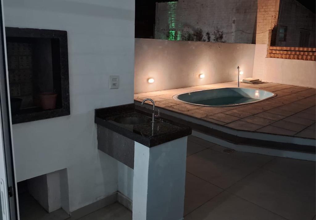 A área externa oferece espaço gourmet com churrasqueira e espera para lareira, piscina com preparo para aquecimento, piso atérmico no pátio e chuveiro externo. Mantém casinha de gás com compartimento para armazenamento, evitando exposição visual de botijão. Ideal para veraneio ou uso anual com elevado padrão de praticidade e acabamento.