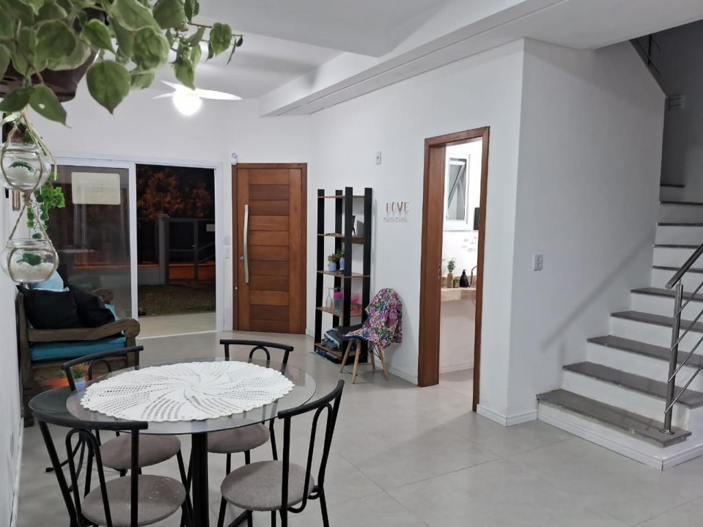 Sobrado mobiliado, pronto para uso imediato, localizado na Rua Goiás, próximo ao centrinho e ao lado leste da Interpraias. Possui 3 dormitórios, sendo 1 suíte, além de banheiro social e lavabo. Ambientes com excelente ventilação natural, sala e cozinha em conceito aberto, pé direito de 3m e dormitórios com piso vinílico. Persianas instaladas nos quartos e blackout na sala, proporcionando maior conforto térmico e luminoso.