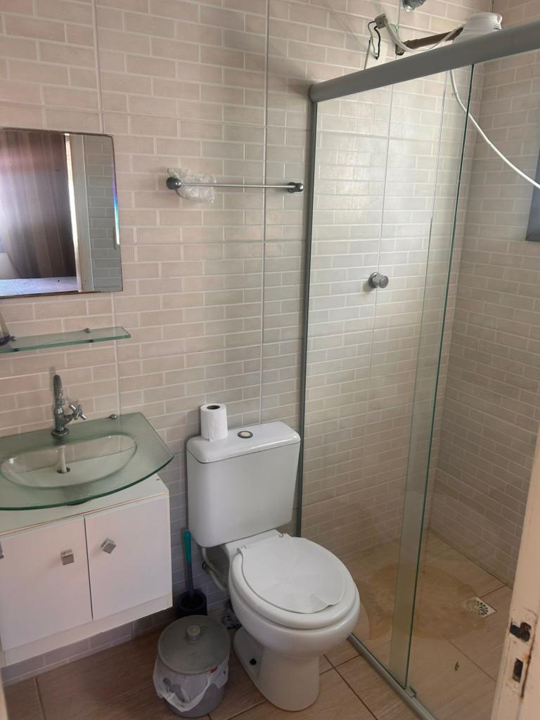 Possui 3 banheiros, sendo um externo para praticidade, ao lado de uma peça para depósito.